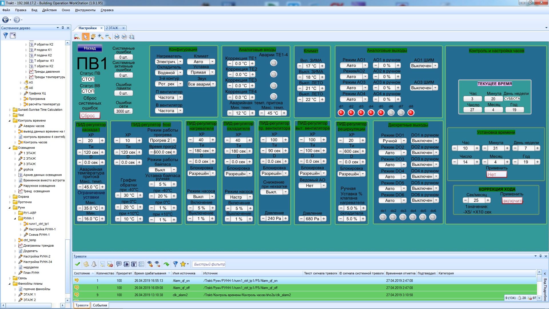 - Контур управления вентилятором с возможностью регулировки по давлению или прямого управления частотным преобразователем.