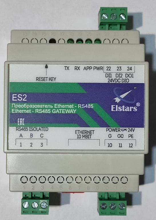 Преобразователь ES2 предназначен для передачи данных из сетей Ethernet в сети RS-485 и обратно. Может использоваться для удалённого опроса промышленных контроллеров, электросчётчиков, водосчётчиков, теплосчётчиков, датчиков и другого оборудования с интерфейсом RS-485