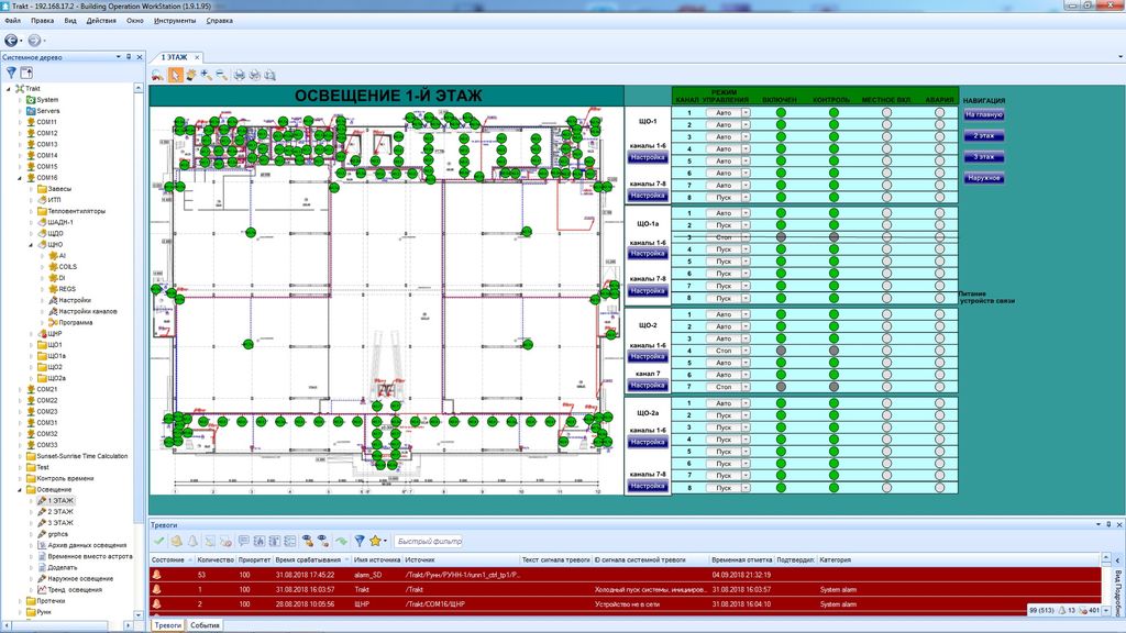 - диспетчеризации и локального контроля дренажных приямков, наличия питания по линиям ВРУ,